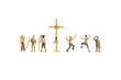 Das Set für die Spur H0 (Maßstab 1:87, ca. 2 cm hoch) enthält sechs Wanderer und ein Gipfelkreuz.