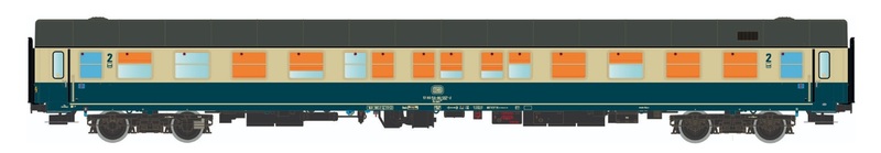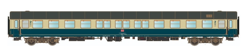 LS ls46182 DB Liegewagen Bctm256, oceanblau-elfenbein, schwarzer Rahmen, mit Klotzbremsen, Epoche IV